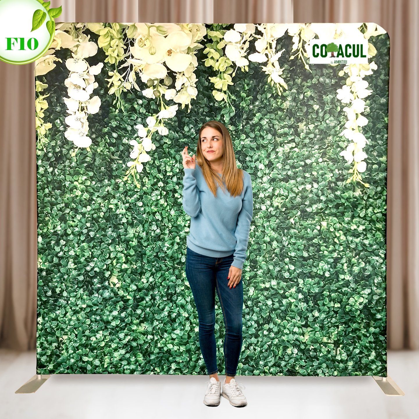 Fundalul de culoare verde sau Green Screen : fundalurile verzi sunt extrem de dorite, deoarece pot fi personalizate in functie de tema si specificatiile alese. Acestea va permit sa utilizati orice imagine, model sau culoare in fundalul fotografiei. Utilizatorii isi fac fotografia normal, apoi se poate aplica orice fundal dorit. Fiecare fotografie poate fi personalizata in functie de dorintele dvs., oferindu-va solutia ideala daca nu ati ales un fundal cu model. Suna complicat, dar tehnologia a evoluat atat de mult, iar procesul dureaza cateva secunde. In functie de evenimentul tau, poti folosi background din diverse locuri ale lumii, astfel vei obtine poze cu tine sau prietenii in Africa, America, Hawaii, in functie de ceea ce-si doreste fiecare. (vezi despre tehnologia Greenscreen) Este ca magia, doar ca este real!